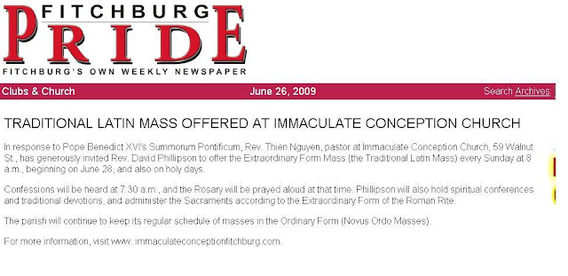 There’s quite a history behind the Latin Masses which have become a regular feature at Immaculate Conception Parish in Fitchburg and St. Paul Parish in Warren. Two years ago Pope Benedict XVI cleared the way for wider usage of such Masses – through his apostolic letter “Summorum Pontificum,” which recounts some of the history.